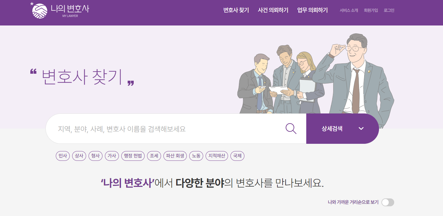 바로 대한변호사협회에서 만든 "나의변호사" 라는 사이트입니다.