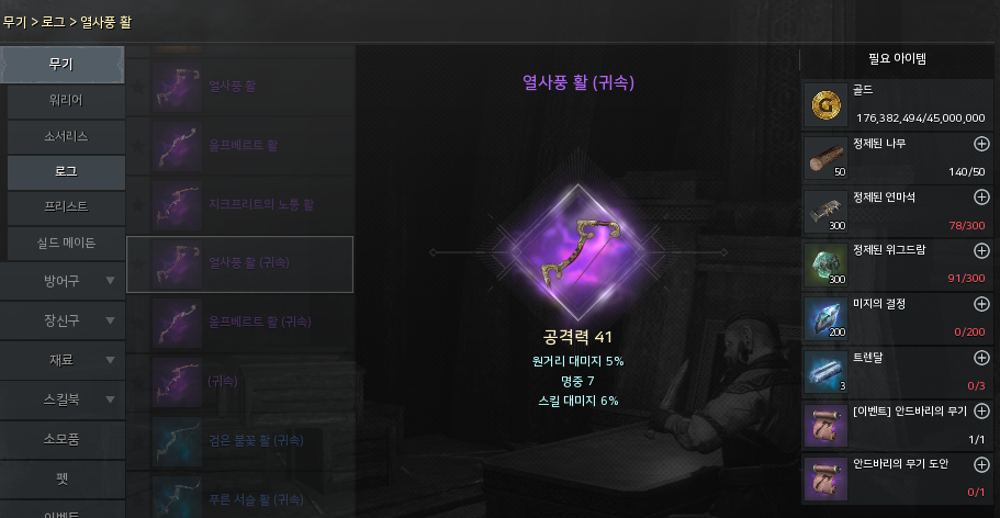 이번에 준 도안으로 이렇게 열사풍(비싼 영웅아이템)을 제작한다고 생각해봅시다.