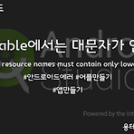 안녕하세요. 용테크의 용사장 입니다. 안드로이드 공부를 하다가 다소 생소한 경험을 하여서 이렇게 포스팅합니다. 보통 파일명, 변수명을 지정할 때 대문자, 소문자를 함께 하는데요! 예를들면 strUserName과 같이 말이지요. 하지만 안드로이드에서는 이렇게 못쓰는 곳이 있더라구요. 보안상 문제인지 뭔지는 모르겠으나.. drawable 폴더에는 사용이 불가합니다! 소문자(a-z), 숫자(0-9), 언더스코어(_)만 사용이 가능하다고 하네요. 해석해보기로는 파일경로를 참조하는거는 다 이렇다는거 같은데.. 다들 당황하지말고 소문자 씁시다! 이만, 용테크의 용사장 이였습니다.