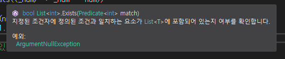 List의 Exists 함수는 파라미터로 Predicate<int> 를 받게되어있는데, 이게 무엇일까요?