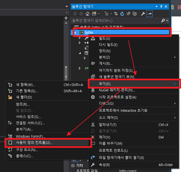 이렇게 눌러서 새로 사용자 정의 컨트롤, 즉 UserControl 을 하나 만들어줍니다. 이름은 마음대로!