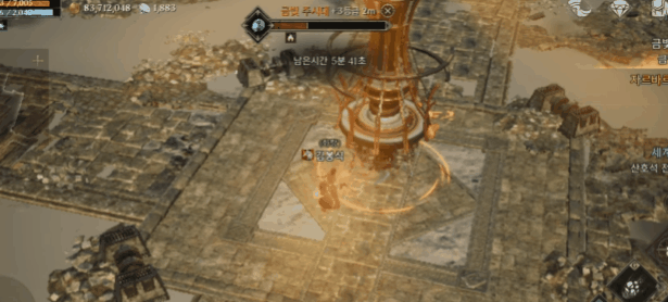 나한테 불덩이 몇 개 던지더니 하늘에서 원형 빔이 떨어집니다. 불덩이 던지면 그냥 피하시면 됩니다.
