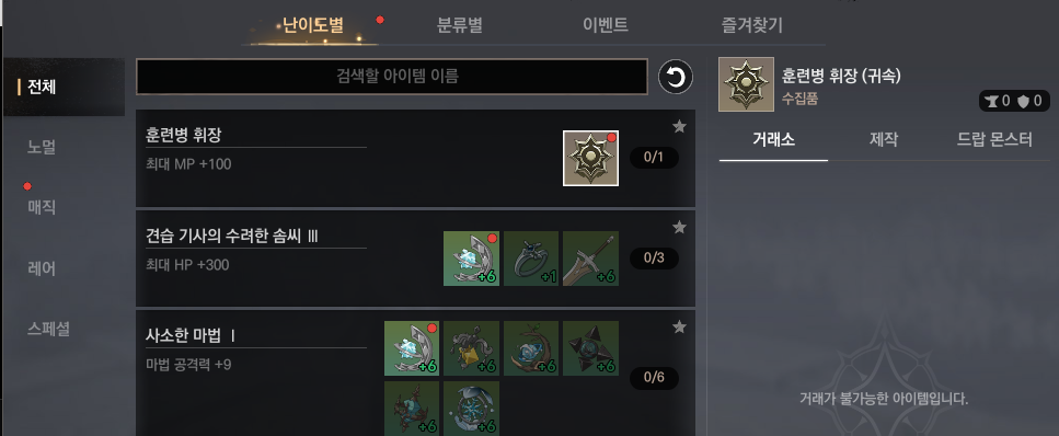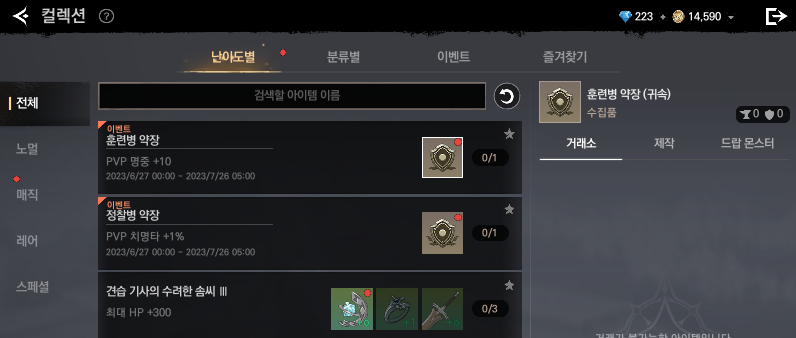 바로 컬렉 재료입니다. 상위에 있는 휘장 3개로는 자잘한 영구컬렉을 올릴 수 있고
