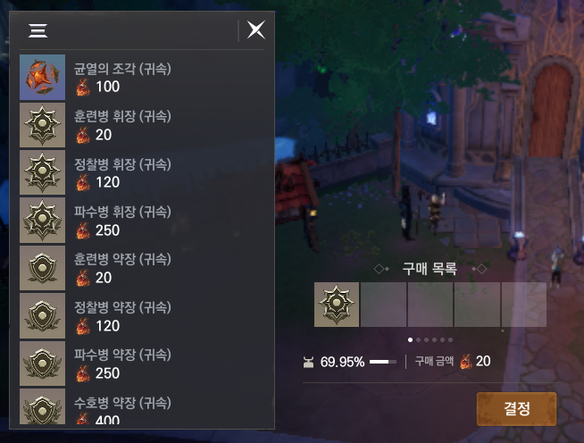 두번째로 마을에 있는 침공전NPC에게 휘장, 약장을 구매할 수 있습니다. 이것을 무엇에 쓰느냐?