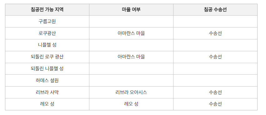 위에 있는 8개 필드가 침공전이 가능한 필드라고 합니다-