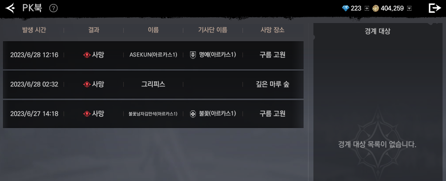 나이트크로우 얼던에서 죽였다고 뭐라하지 않는것처럼요-