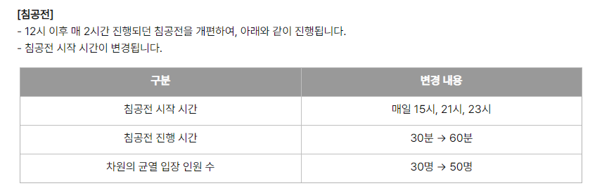 7월5일 업데이트 이후 침공전 시간이 변경되었습니다.