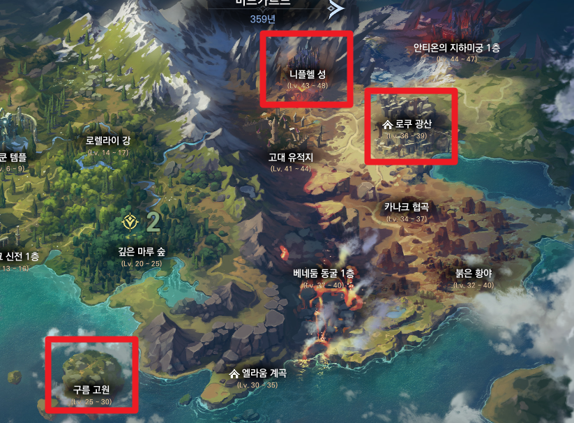 이렇게 보면 어딘지 모르시겠지요? 지금 다들 머물고 계실 미드가르드 지도에서 한번 봅시다.