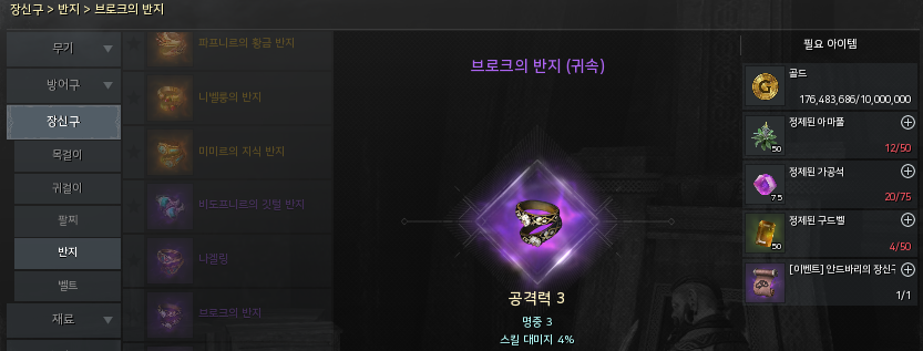그보다 좀 떨어지지만 브로크의 반지도 나쁜 선택지는 아닙니다. 이거 맞추시고 나겔링 살 돈으로 다른 스펙업 하시면 되니까요!