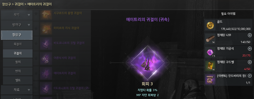 저는 무기는 노퉁, 방어구는 망토, 장신구는 귀걸이 만들고 기존꺼 팔아버리려합니다-