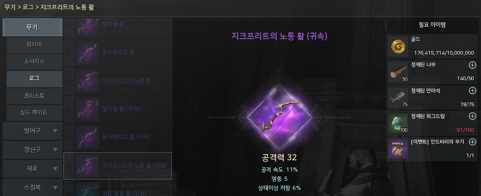 먼저 무기부터 봐보겠습니다- 무기는 다른 선택지가 없어요. 그냥 지크프리트의 노퉁으로 가세요!