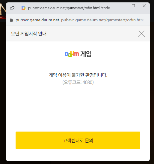 오딘 게임 실을 하려고 했는데 이런 팝업이 뜨셨나요? “게임 이용이 불가한 환경입니다. (오류코드:4080)”