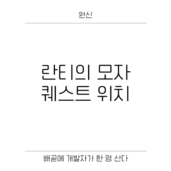 곳곳에 위치한 퀘스트들 중에 맵 남단에 "란티" 낚시하는 놈이 지 모자 없어졌다고 찾아달라는 퀘스트가 있어요!